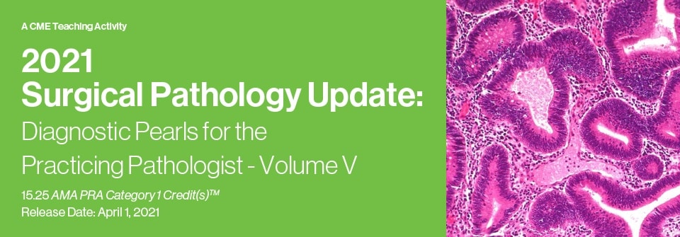 2021 Surgical Pathology Update: Diagnostic Pearls for the Practicing Pathologist – Volume V This teaching activity has been designed to provide a practical and comprehensive overview of a number of topics in surgical pathology, including head and neck, gastrointestinal, hepatobiliary, gynecologic, genitourinary, and soft tissue pathology.